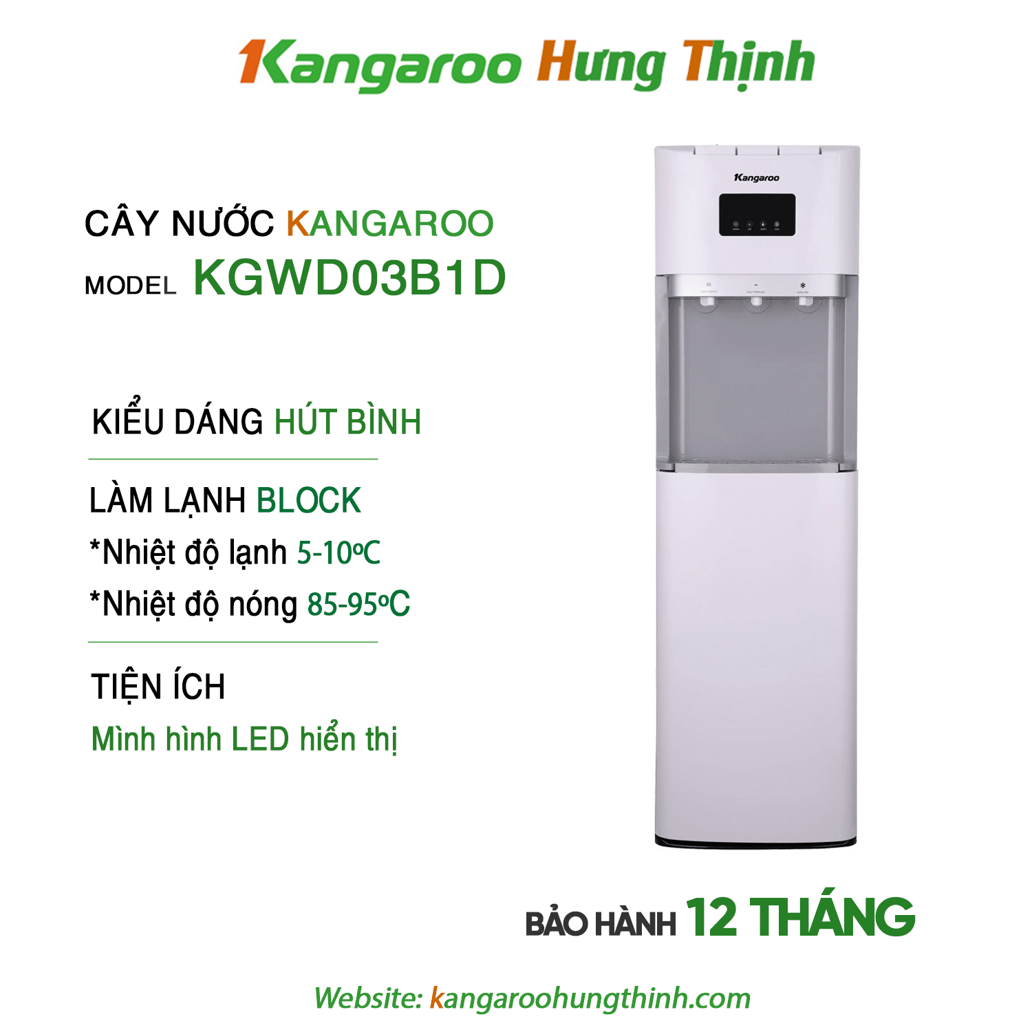 KGWD03B1D của Kangaroo sử dụng công nghệ hút bình. Bình nước được đặt phía dưới giấu trong thân máy không tốn diện tích và rất tiện lợi, giúp dễ dàng thay thế bình nước mới mà không mất sức. Dòng hút bình được ưa chuộng nhờ thiết kế gọn gàng và dễ lau chùi.