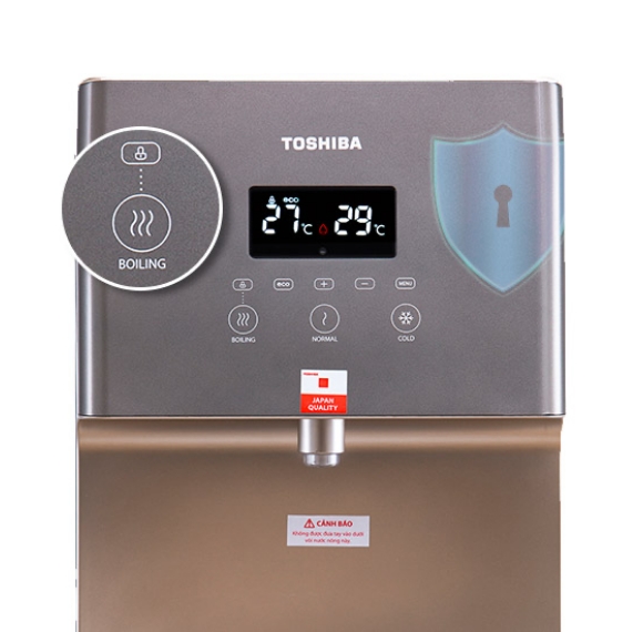 Máy nước nóng lạnh Toshiba RWF-W1830UVBV tích hợp thêm tính năng chống quá nhiệt. Máy có thể phát hiện được mức nhiệt nước vượt quá mức giới hạn. Từ đó chức năng làm nóng sẽ được tắt kịp thời, tránh gây hại và bảo vệ an toàn tuyệt đối cho người sử dụng.