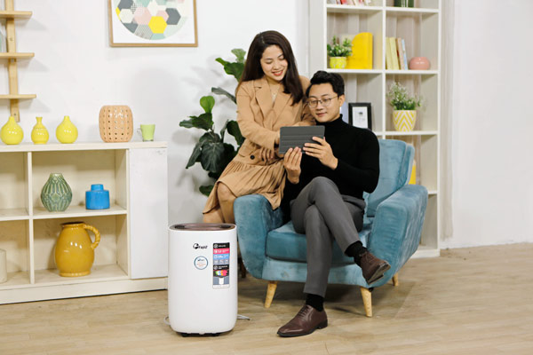 Công suất hút ẩm 12 lít/ngày, dễ di động, tính thẩm mỹ cao, đặt trong phòng khách, phòng ngủ, phòng làm việc.